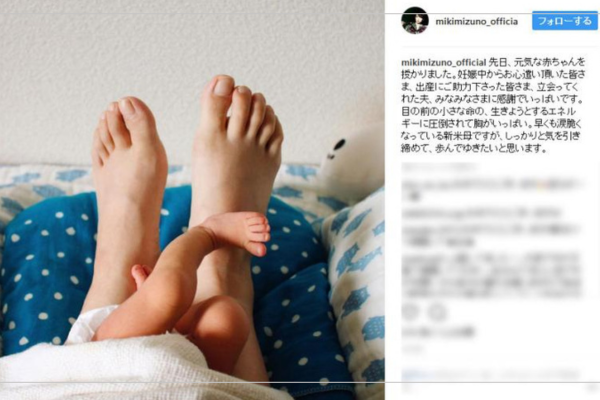 2017年7月、水野美紀さんは自身のインスタグラムで第一子の誕生を報告しました。
